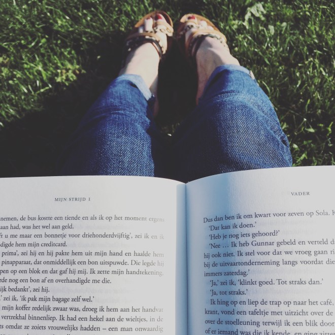 Maar daar zou het niet lang blijven liggen. Ik sleur de klepper van 445 bladzijden overal mee naartoe: naar de zetel, in de tuin, naar het bos, op de trein, met mijn trouwe compagnon,… Ik kan niet stoppen met lezen. Het lijkt alsof Knausgaard me rechtstreeks aanspreekt. Zijn autobiografie is eigenlijk een levensverhaal van jan en alleman, maar hij beschrijft het zo eerlijk en zonder franjes dat het me helemaal meesleept.