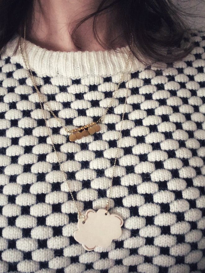 Een tijdje geleden maakte ik mijn eerste ketting in Shrinkles papier, in de vorm van een kolibrie. Deze winter warmde ik mijn oven nog eens op voor een nieuw juweeltje, deze keer met de contouren van een wolkje.