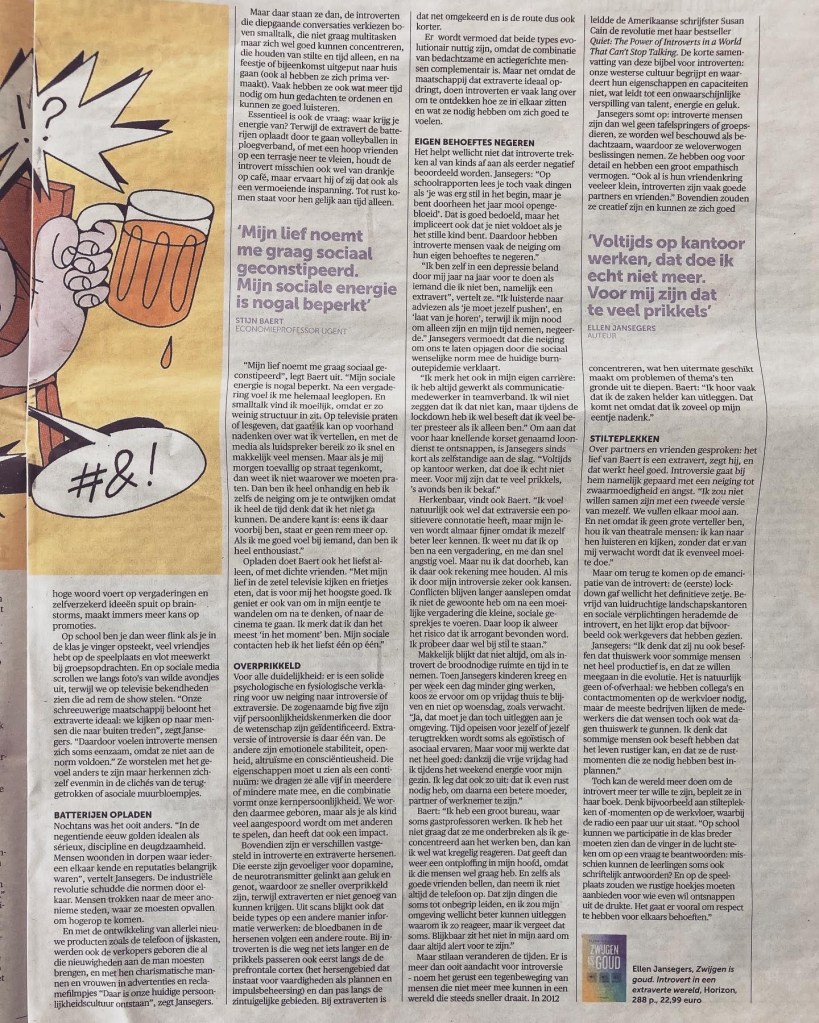 Essentieel is ook de vraag: waar krijg je energie van? Terwijl de extravert de batterijen oplaadt door… Lees het artikel op de website van De Morgen