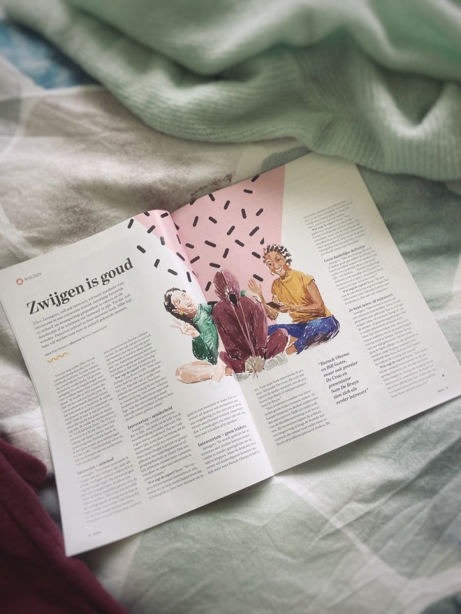 Tien jaar lang werkte Ellen (35) als communicatiemedewerker voor verschillende bedrijven. Ze zette websites op, schreef teksten voor brochures, onderhield de sociale media. De grootste uitdaging? De vele vergaderingen waarvoor ze telkens buiten haar comfortzone moest. “Ik besefte in 2015 waarom dat deel van het werk niet bij mij paste. Ik was in een postnatale depressie beland, wat toen nooit zo is benoemd. Ik voelde mij gewoon niet goed en veranderde van werk. Toen ik weer in een job terecht kwam die niet bij mij paste, en daarna nog eens. Ik voelde me een buitenbeentje. Tot ik het boek Quiet: The Power of Introverts in a World That Can’t Stop Talking van Susan Cain las, wat een openbaring was. Eindelijk besefte ik: ik ben geen roeper, geen tafelspringer. En dat is oké.” Die boodschap wil ze nu ook overbrengen aan een eerder extraverte maatschappij.