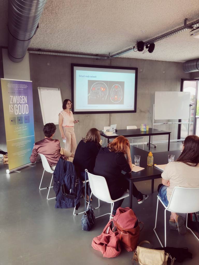 ‘Na de lezing heb ik mijn eigen training anders aangepakt. Ik had een erg interactieve sessie voorbereid, maar het publiek was nogal timide. Ik liet hen de optie: twee per twee iets bespreken, of alleen reflecteren. Achteraf kwam een deelnemer me persoonlijk bedanken omdat ze de kans had gekregen alleen te werken.’